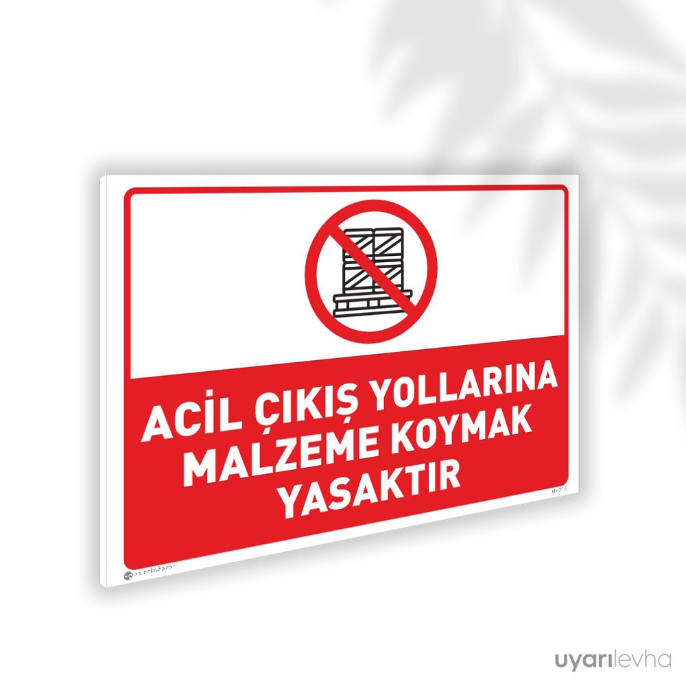 Acil Çıkış Yollarına Malzeme Koymak Yasaktır İkaz Levhası
