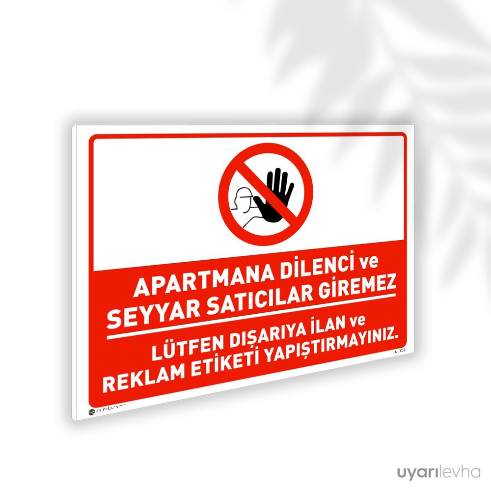 Apartmana Seyyar Dilenci Giremez Reklam Etiketi Yapıştırmak Yasaktır İkaz Levhası