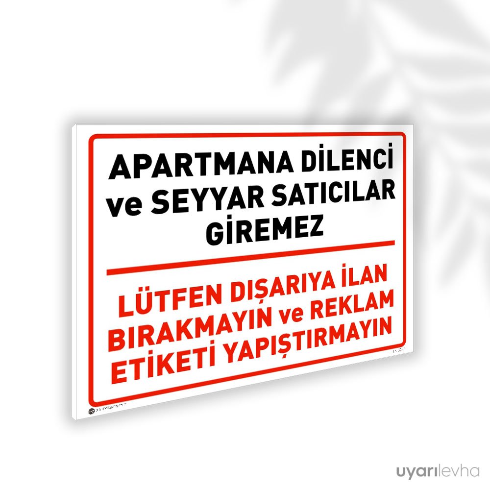 Apartmana Seyyar Satıcı Giremez İlan Etiketi Yapıştırmak Yasaktır Uyarı Levhası. Site yönetimi ile ilgili tüm uyarı levhalara “bu kategoriden” ulaşabilirsin.