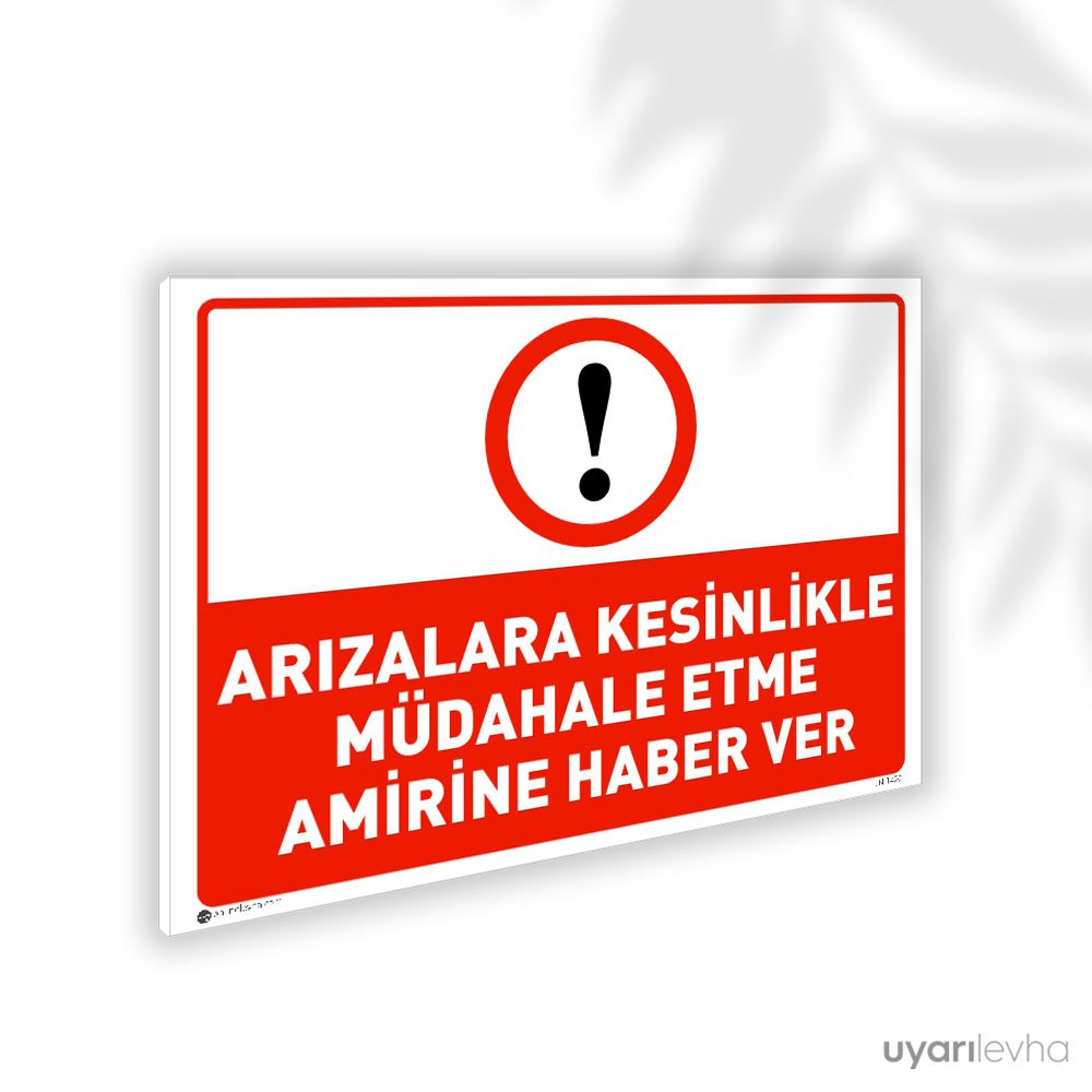 Arızalarda Kesinlikle Müdahale Etme Amirine Haber Ver İkaz Levhası