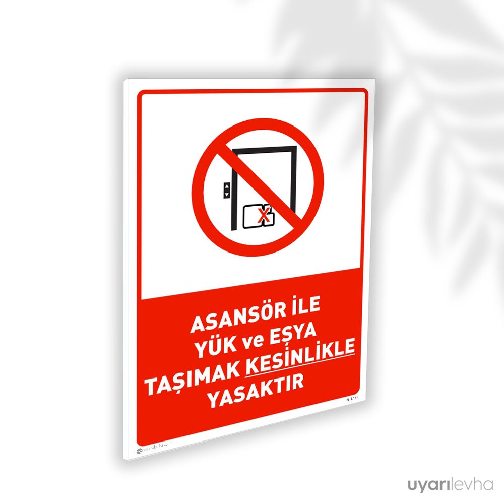 Asansörde Yük ve Eşya Taşımak Kesinlikle Yasaktır İkaz Levhası